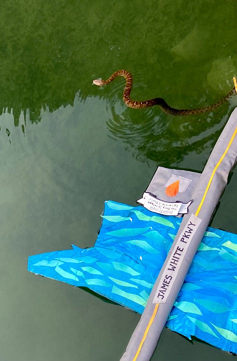 Check out that beautiful banded water snake checking out the Mighty Mud map!