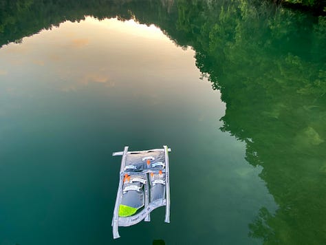 Water and flotation have been in my ether the past few weeks. Breadcrumbs of water and floating related experiences and thoughts landed me at the newly reopened Augusta Quarry in Fort Dickerson Park, where I was surprised by a new policy. The park began a contract with an outfitter company that supplies branded floating tubes for $5/hour; or visitors can borrow a free life jacket. All others with floats are asked to leave or are prevented from using what they brought. The staff said something to the effect of: standard floats are not life-saving devices.